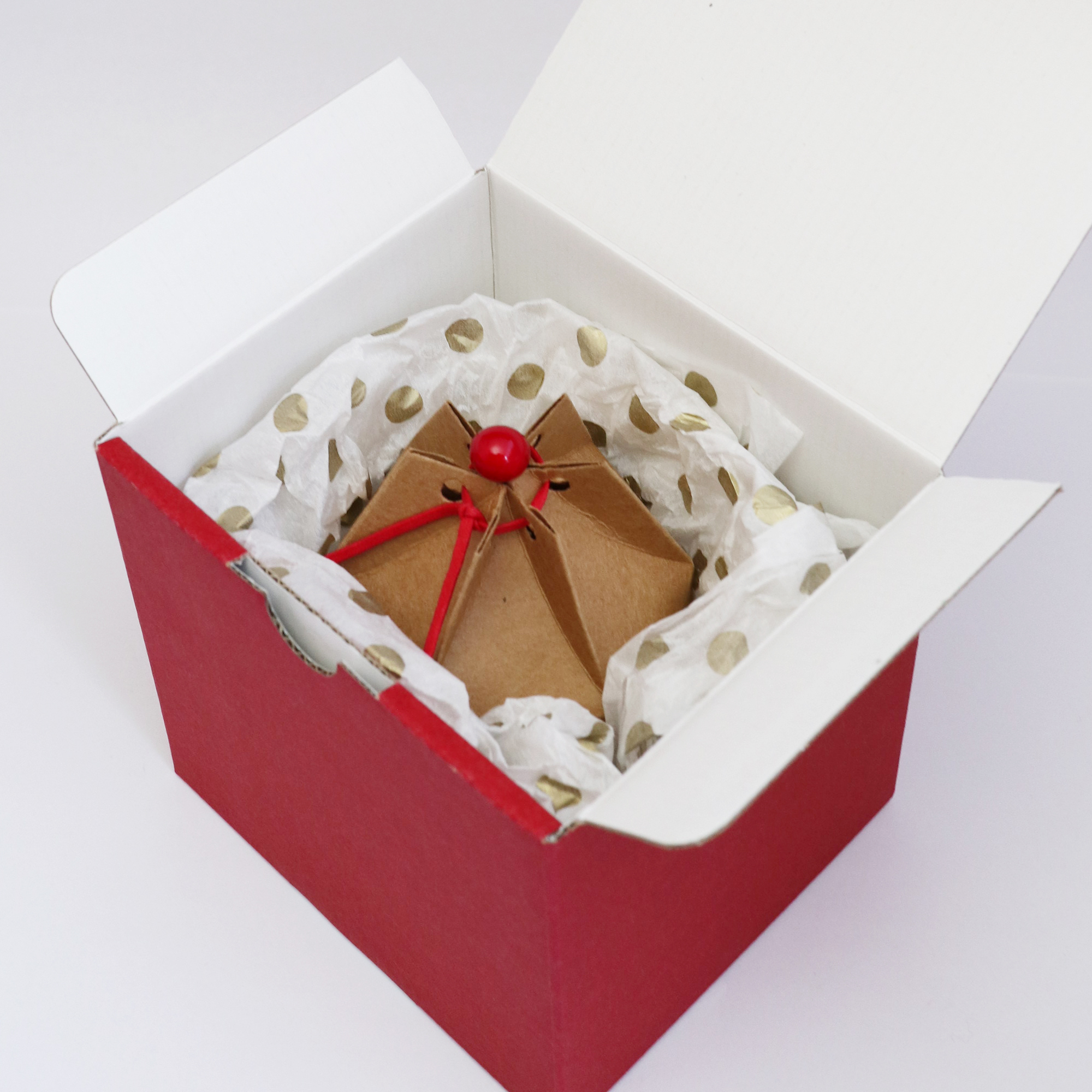 さらに、発送時にはクリスマスらしい赤いボックスとメッセージカードがセットになった、ギフトラッピングでお届けします。開けた瞬間に広がる小さなワクワク感と、香りの演出を通じて、特別なひとときをお楽しみください。
